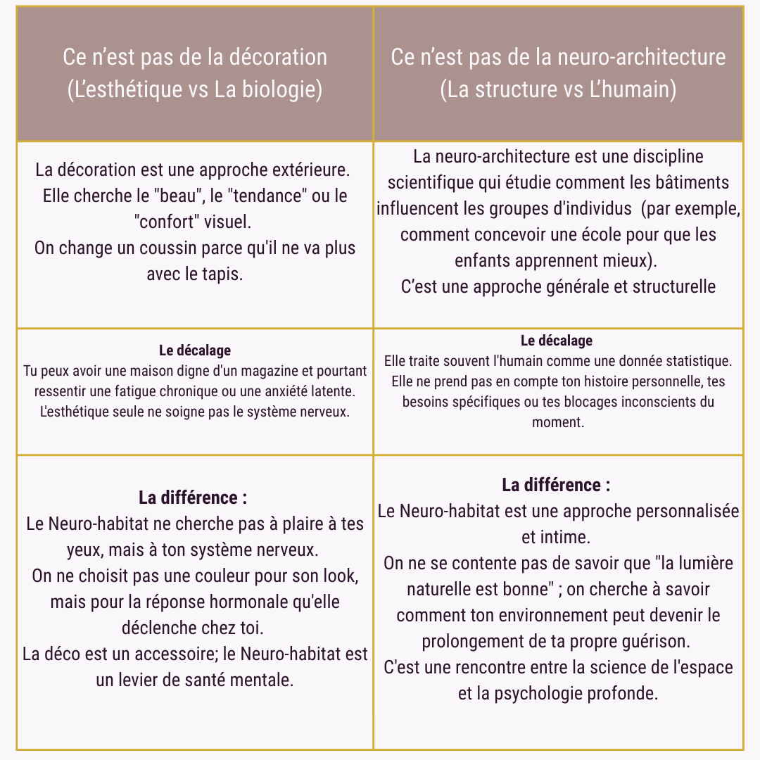 Il est facile de confondre le Neuro-habitat avec ce qui existe déjà. Pourtant, la différence est fondamentale.